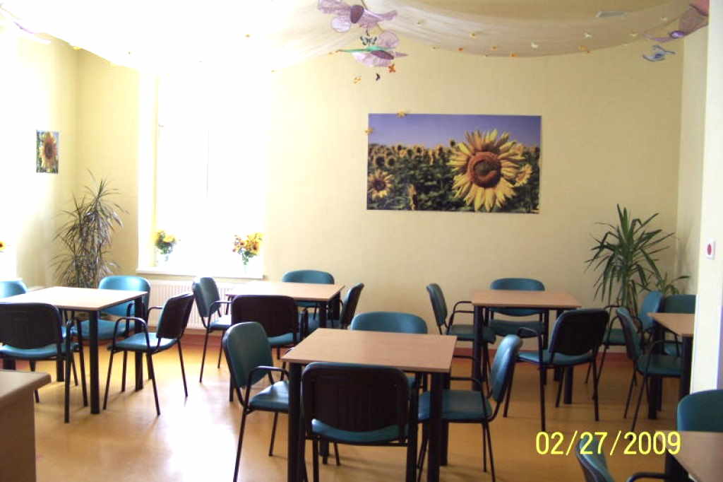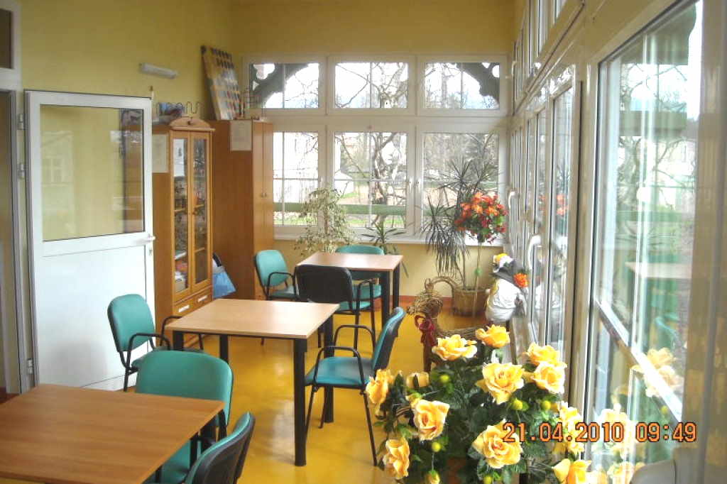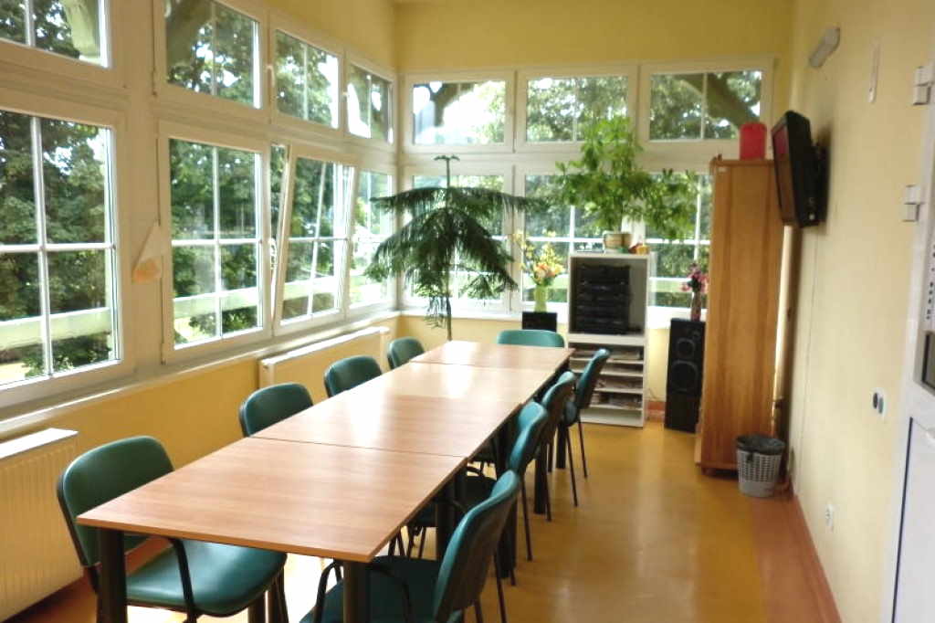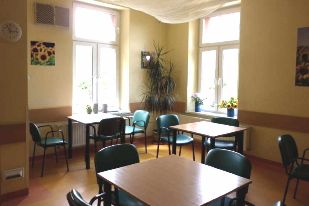 Der gemütlich eingerichtete Aufenthaltsraum des Seniorenheims in Polen verfügt über aktuelle Zeitschriften und Zeitungen, Spielen zur Verbesserung das Erinnerungsvermögens, einen Fernseher, und einer Auswahl von Büchern. Außerdem hat das Seniorenheim in Polen einladende Speisesäle, eine Sonnenterrasse mit Liegestühlen, einen Wintergarten und eine großzügige und abgezäunte Außenanlage. Der Außenbereich verfügt zur Sicherheit der Bewohner über ein System zur Markierung und Überwachung der Verkehrswege.